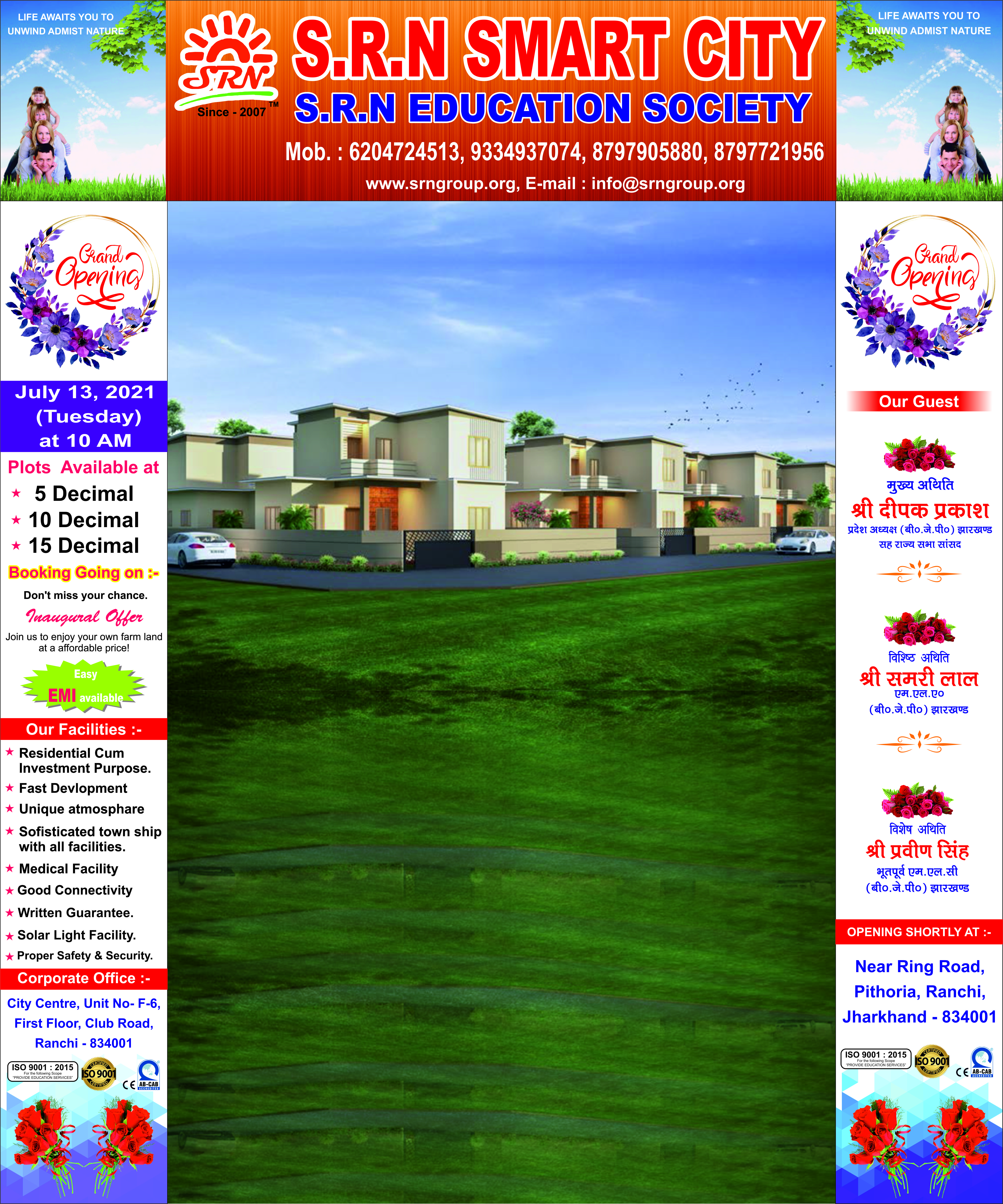 Resolution A General Body meeting of “Suresh Rekha Nawal (S.R.N. EDUCATION SOCITEY) was held on 14.03.2007 in the office of the society, GA-27 City Centre, Sector-IV Bokaro Steel City, P.S.-Bokaro City Post –Bokaro Sec.IV, Dist– Bok